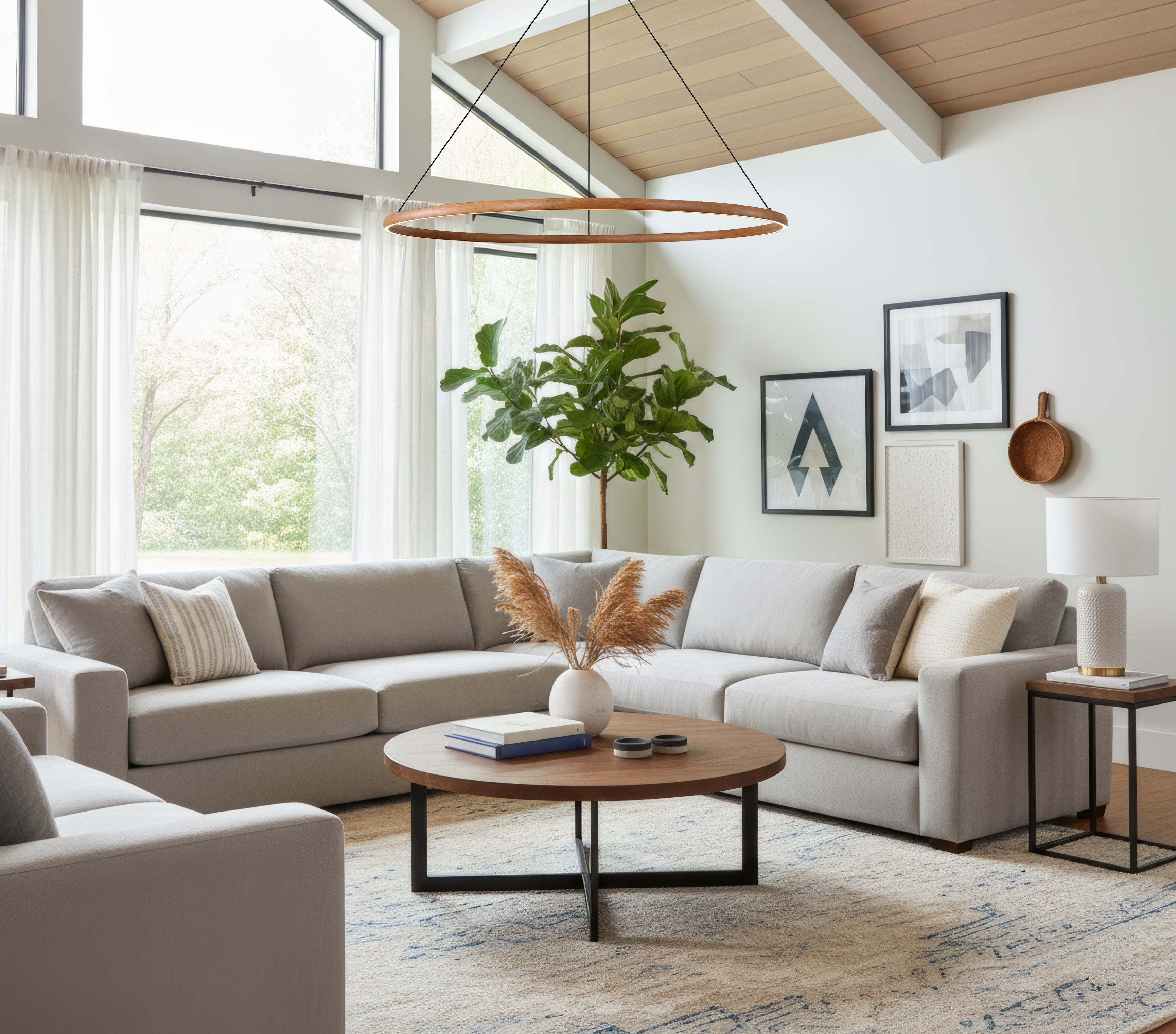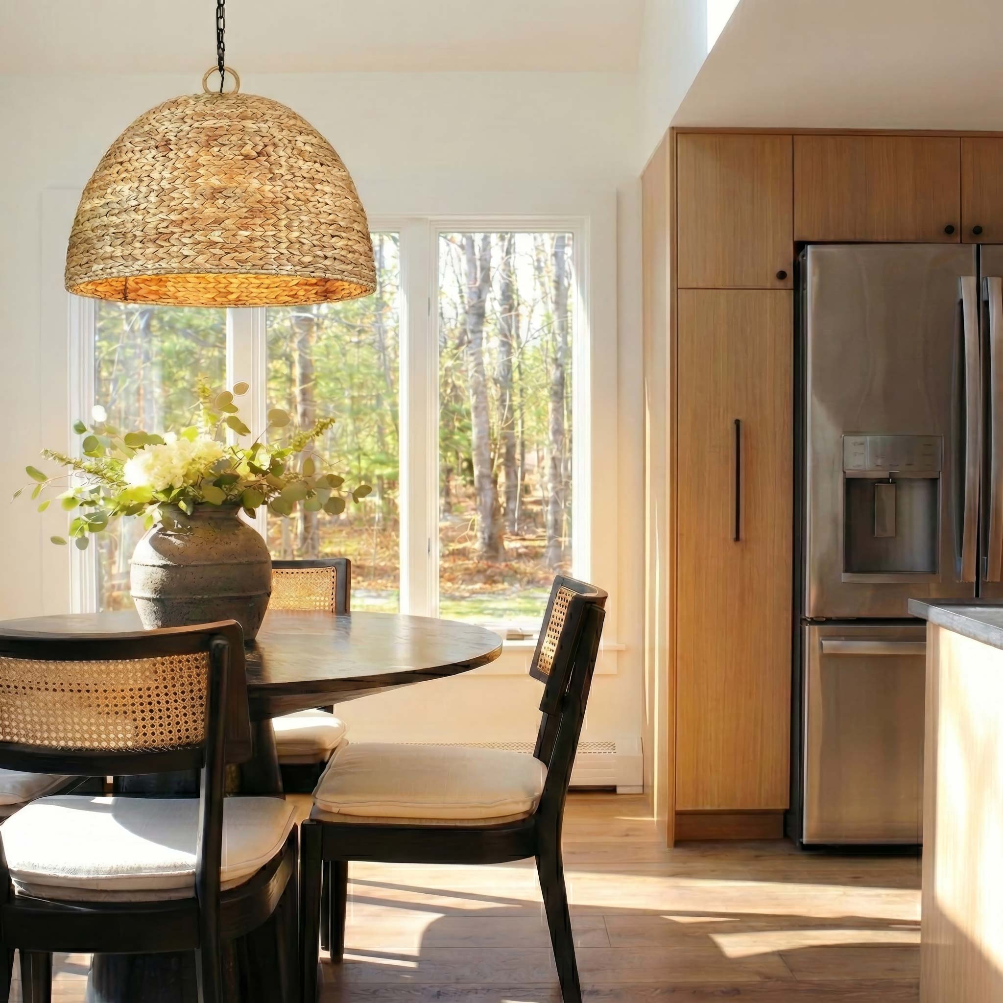 Designed for gathering, playing, and unwinding, this bonus room balances function with a refined, textured finish. Avon in Matte Black anchors the lighting moment with sculptural contrast and a rope shade that filters light into a soft, welcoming glow.