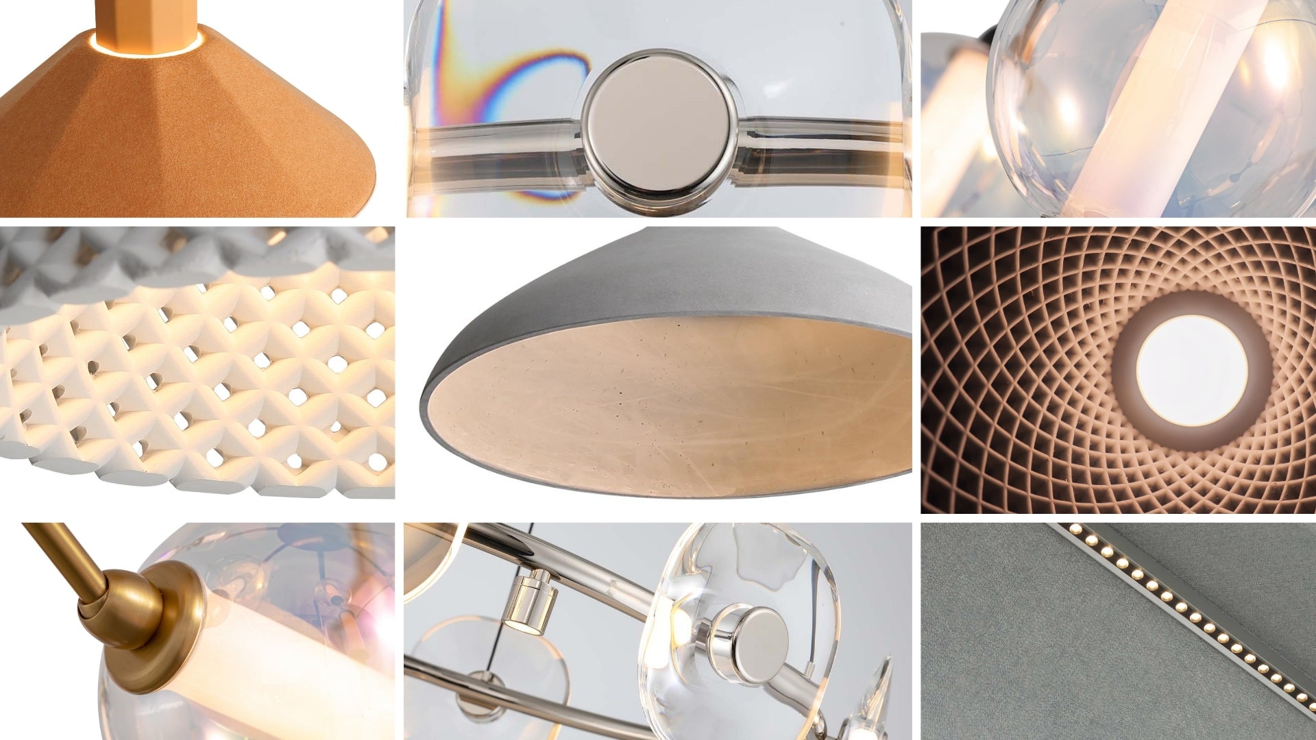 Felt. Iridescent Glass. Polished Metal. K9 Crystal. Handcast Concrete.