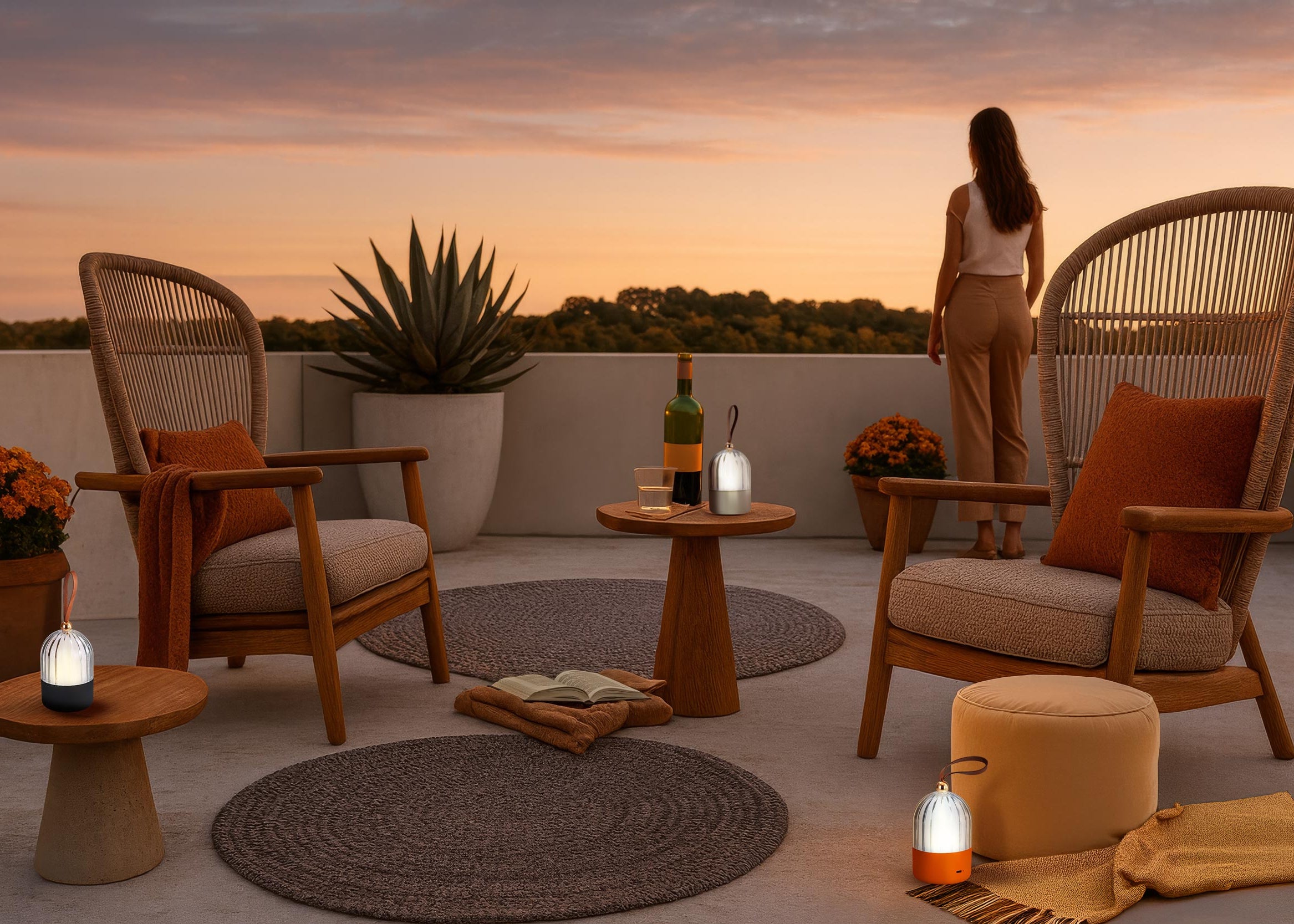 A sculptural, carry-anywhere lantern for instant atmosphere—indoors or out. Tap to dim, lift to relocate. Style it where cords can’t go: bar carts, shelves, porch corners.