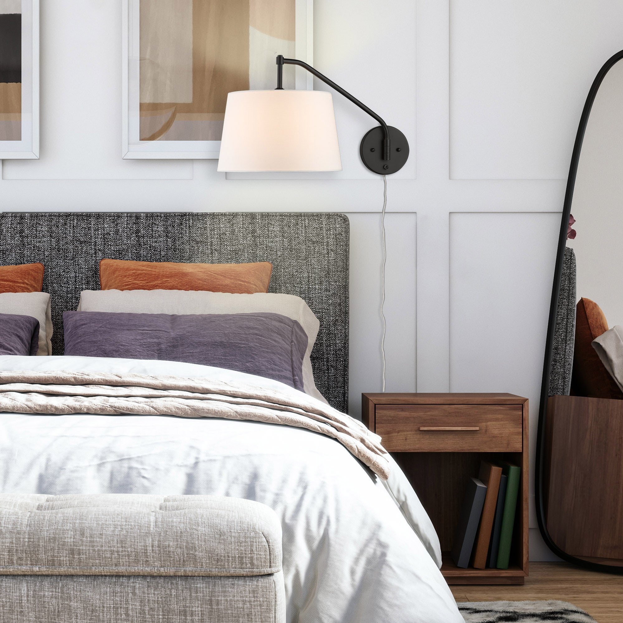 - Bedside: 55–60″ from floor or 22–26″ above nightstand.